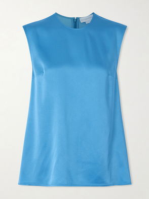 Stella McCartney's top is cut from mesh printed with dappled, watercolor-like blooms, which were originally hand-painted in the brand's London atelier. It has a classic crew neckline, three-quarter-length sleeves and is gently ruched across the waist.