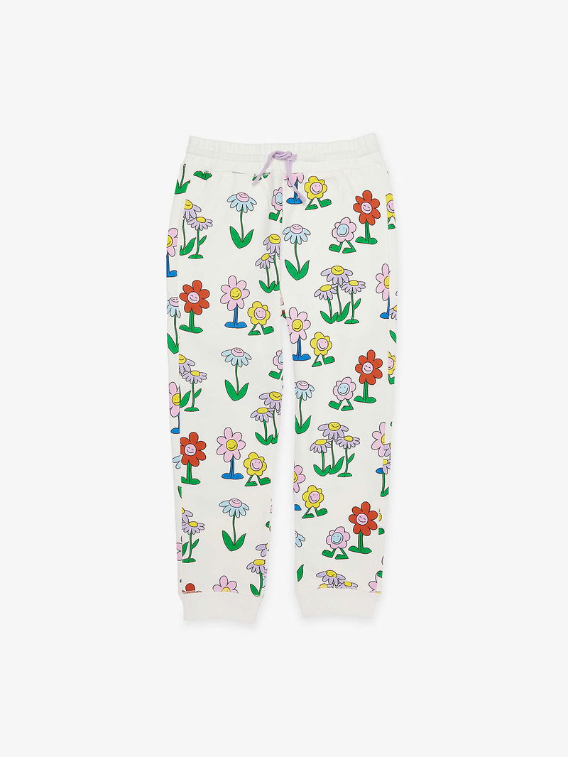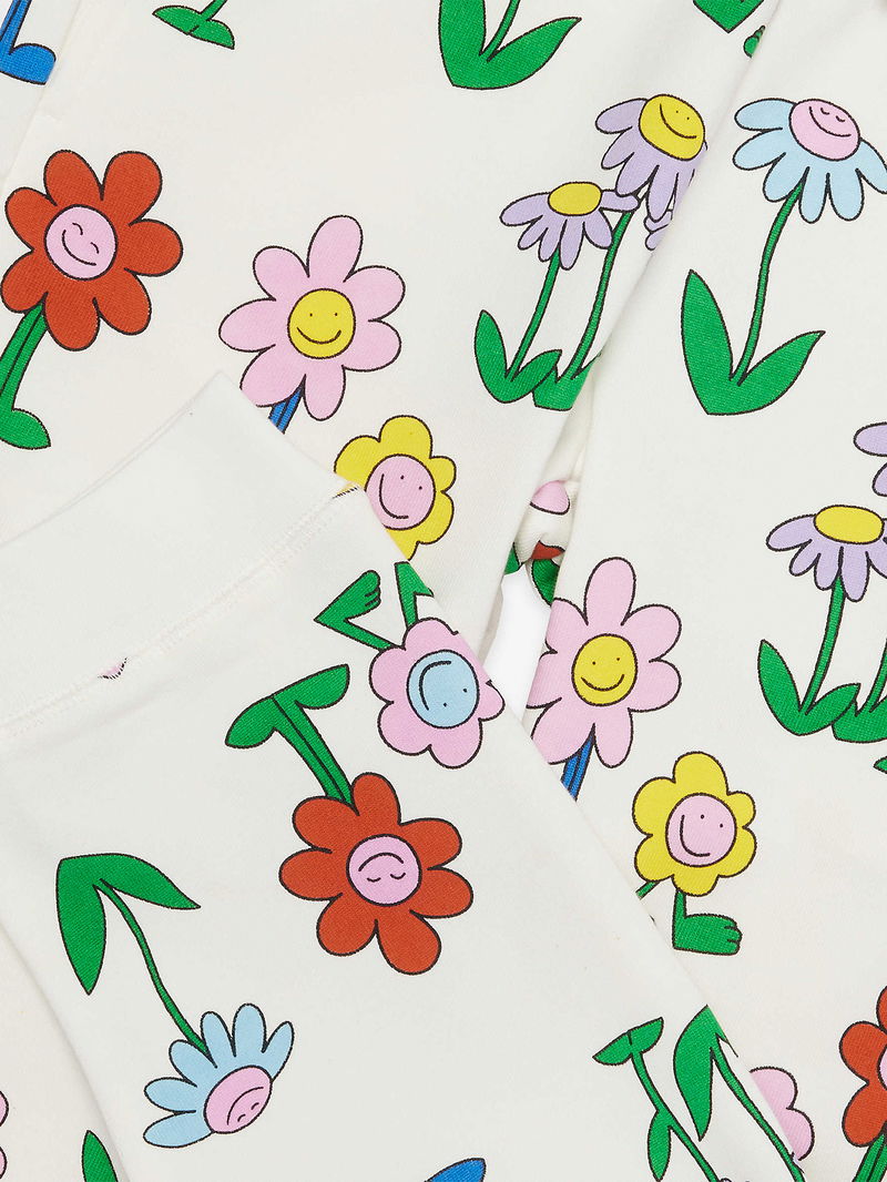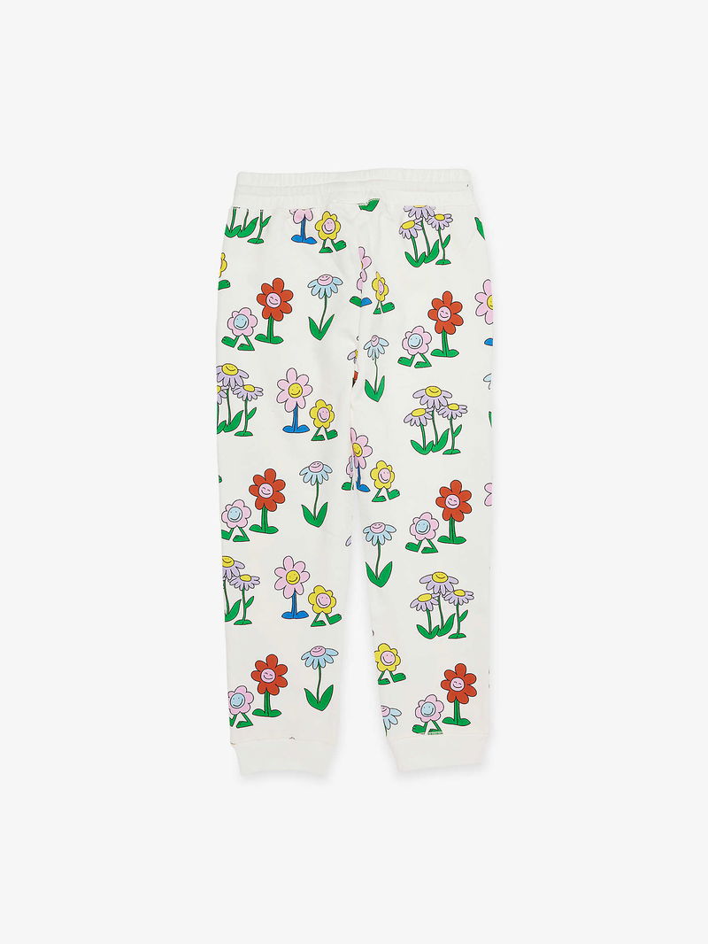 Stella McCartney cotton-jersey jogging bottoms. Elasticated drawstring waistband, all-over flower graphic print, two side pockets, flat trims at cuffs, elasticated cuffs