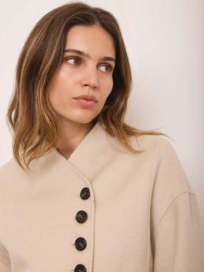 Stella McCartney’s Fall '25 collection channels the eclectic spirit of the 1970s, drawing from the wardrobes of her parents to merge rockstar glamour with refined tailoring. Part of the opening look, this jacket is made from a tactile fringed wool-blend in a voluminous shape with a plush feel and ribbed mock neck.