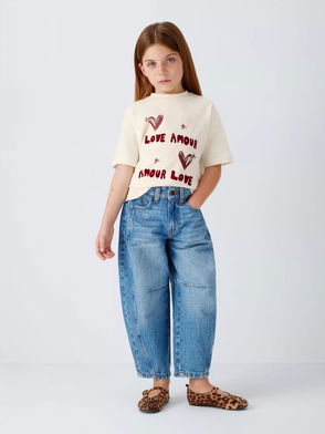 Stella McCartney Kids cotton top. Heart print, ribbed crew-neck, embroidered details, ruffled panel.