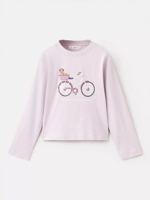 Stella McCartney Kids cotton top. Ribbed, crew-neck, logo print, side splits at hem, longer back hem.