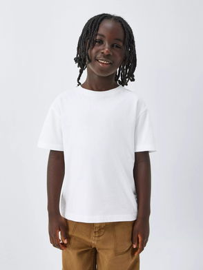Stella McCartney Kids cotton T-shirt. Ribbed crew-neck, logo print at front, side splits at hem, longer back hem.