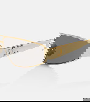 Stella McCartney’s gold aviator glasses strike a 1970s mood inspired by classic flight silhouettes. They’re crafted from polished metal with a double bridge and clear lenses, which can be switched out for prescription purposes, then engraved with a logo at each arm and trimmed with bio-acetate temple tips. Complement them with gold jewellery.