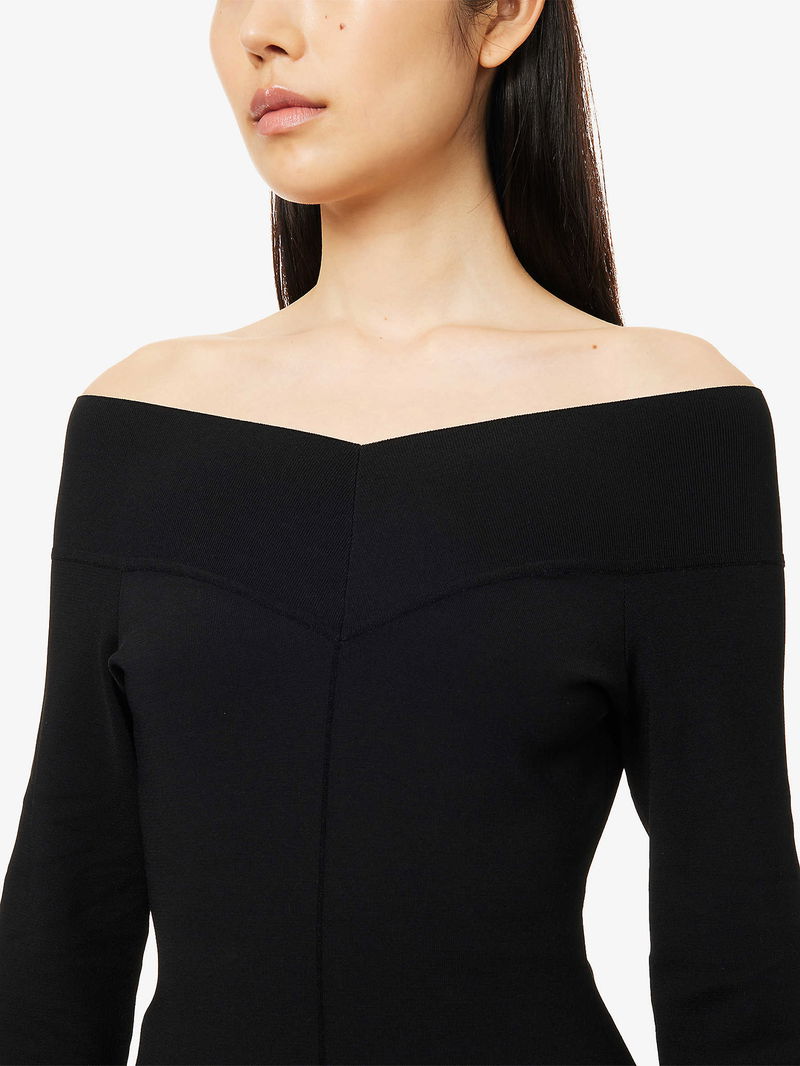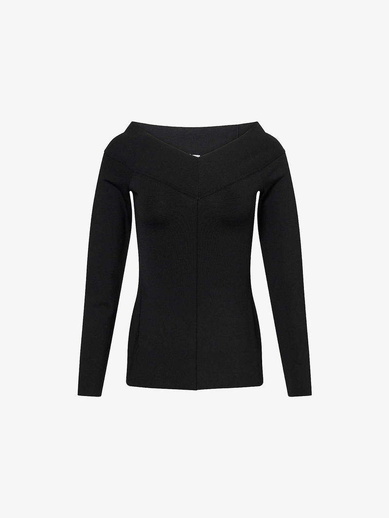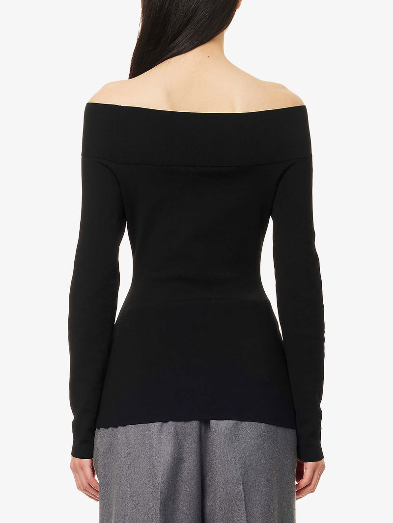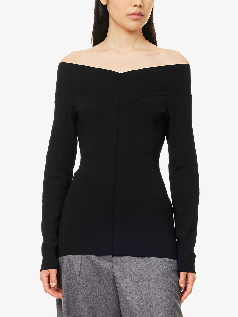Off-Shoulder Long-Sleeve Compact-Knit Top