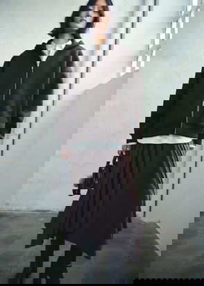 Stella McCartney's bomber jacket belongs to the Autumn '25 collection, which draws inspiration from her parents' shared wardrobe and evokes a rock 'n' roll feel. It's made from brushed synthetic fabric and has an oversized fit and a pointed collar. Wear yours with denim.
