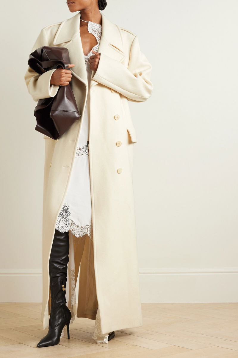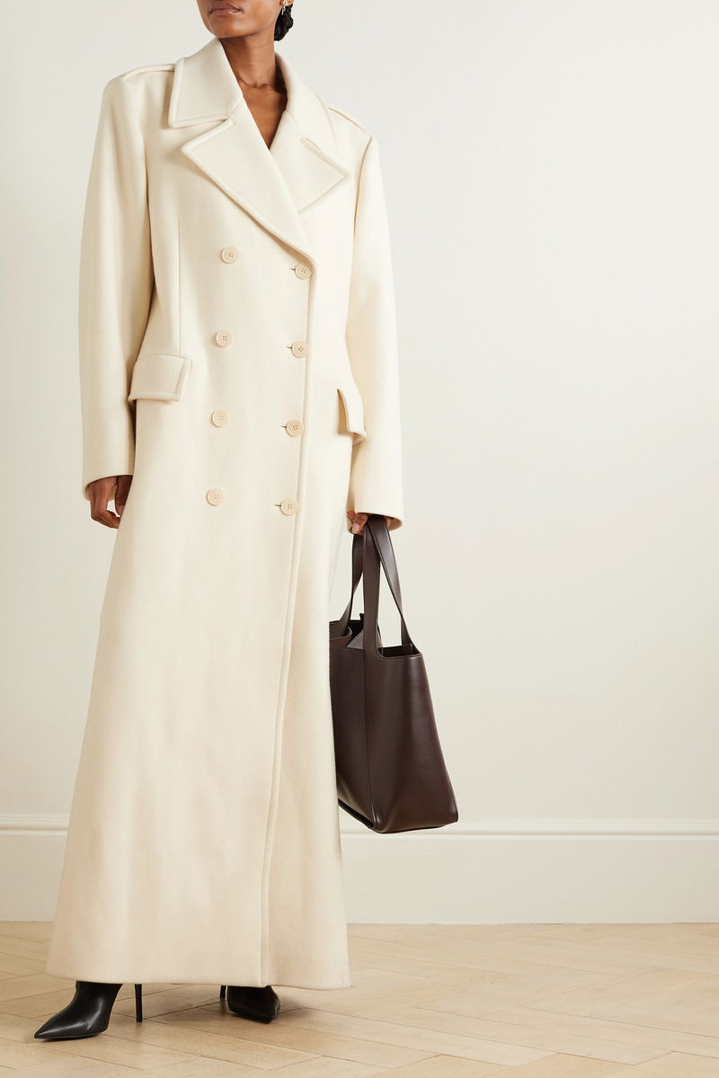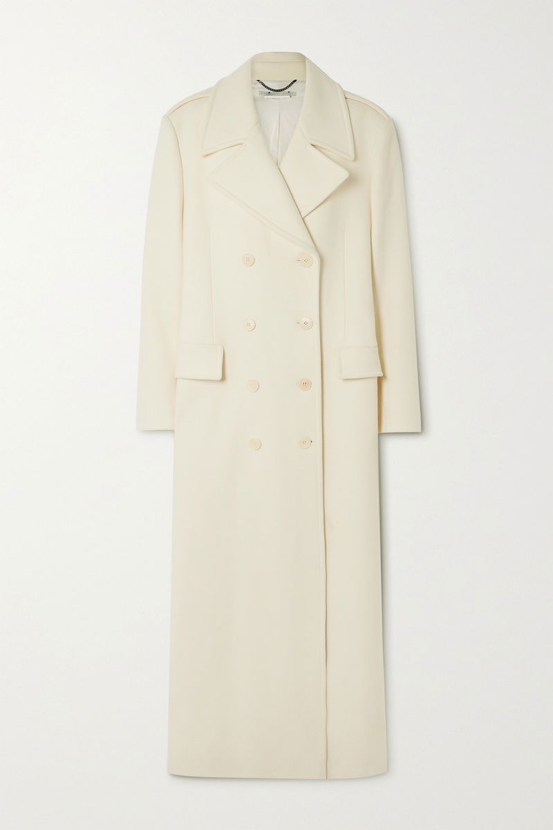 There were so many highlights at Stella McCartney's Winter '23 show in Paris, including maxi coats. This one is tailored from soft wool in a fresh cream shade and has a forever-classic double-breasted shape. Layer yours over a delicate slip dress and knee boots.