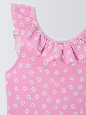 Stella McCartney Kids blue stretch-polyamide swimsuit. Round neck, printed, lilac ruffled trims, racer back, elasticated trims, fully lined.