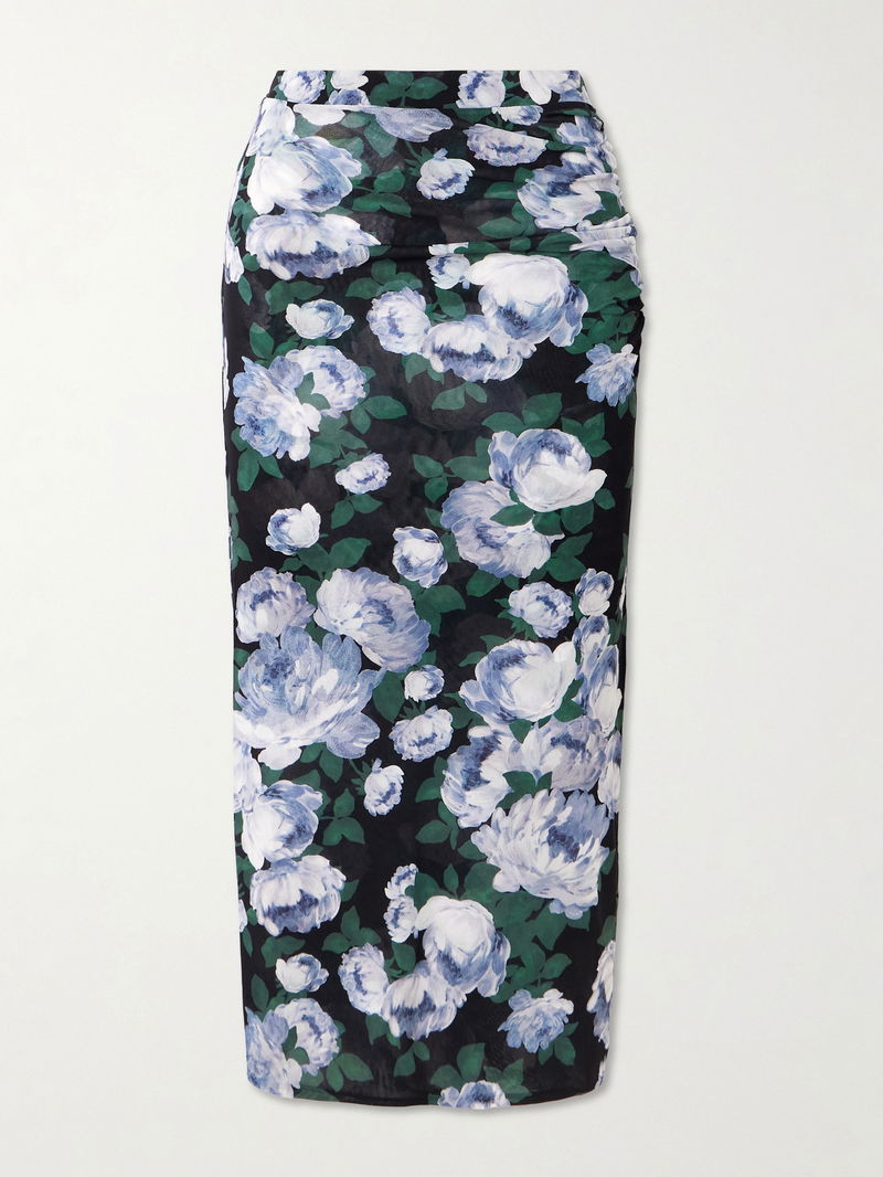 Stella McCartney's skirt is printed with blooming roses, which were dreamt up and hand-painted for the brand in London. It's made from stretch-mesh and gently ruched across the hips for a close fit.