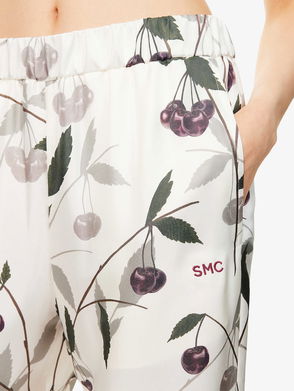 Multicoloured trousers, elasticated waist and zip hemline. In excellent, pre-loved condition. There is a pull to the weave on the top right leg and the stitching on hem of left leg is loose.