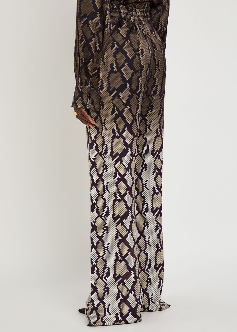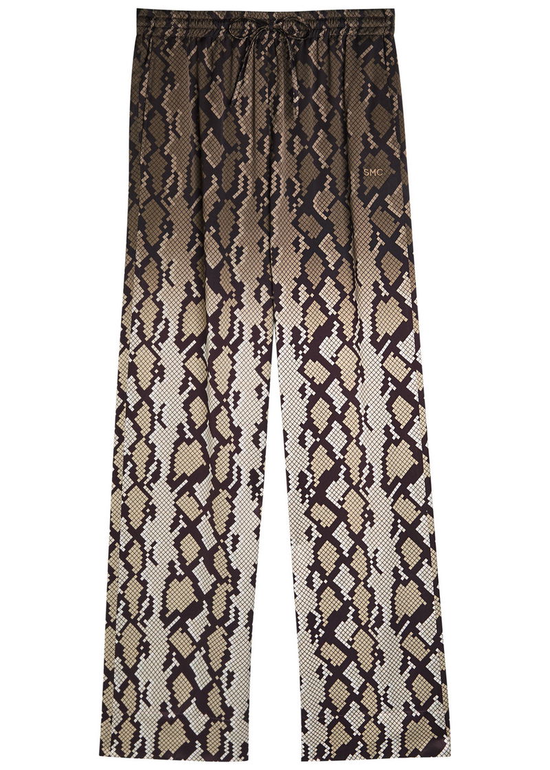 Stella McCartney satin pyjama trousers. Snake print, elasticated drawstring waistband, logo embroidery, side slip pockets.