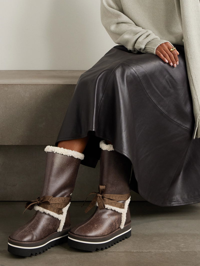 Cozy yet refined, Stella McCartney's 'Sneak-Elyse' boots are the perfect pair for après ski. They're made from gently distressed vegetarian material trimmed with plush fleece and have logo-embroidered grosgrain ribbons that wrap around the ankle. The serrated soles ensure traction on slick surfaces.