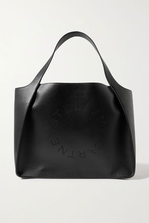 The Stella Logo tote has become a signature of Stella McCartney. Fusing expert craftsmanship and cruelty-free materials, this spacious design is crafted from eco faux leather and features the label’s circular motif studded across the front.
