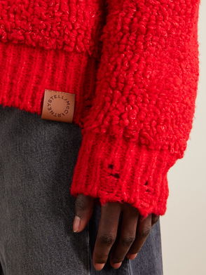 The bold tiger stripes on this sweater celebrate Stella McCartney's "lifelong love" of animals. It's made from sumptuous alpaca-blend and has a loose shape defined by ribbed trims. Temper the open construction with a tonal bralette.