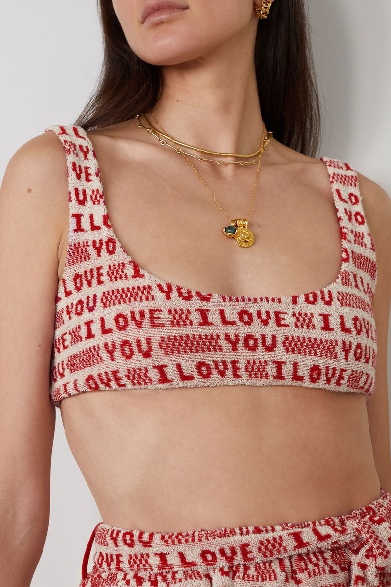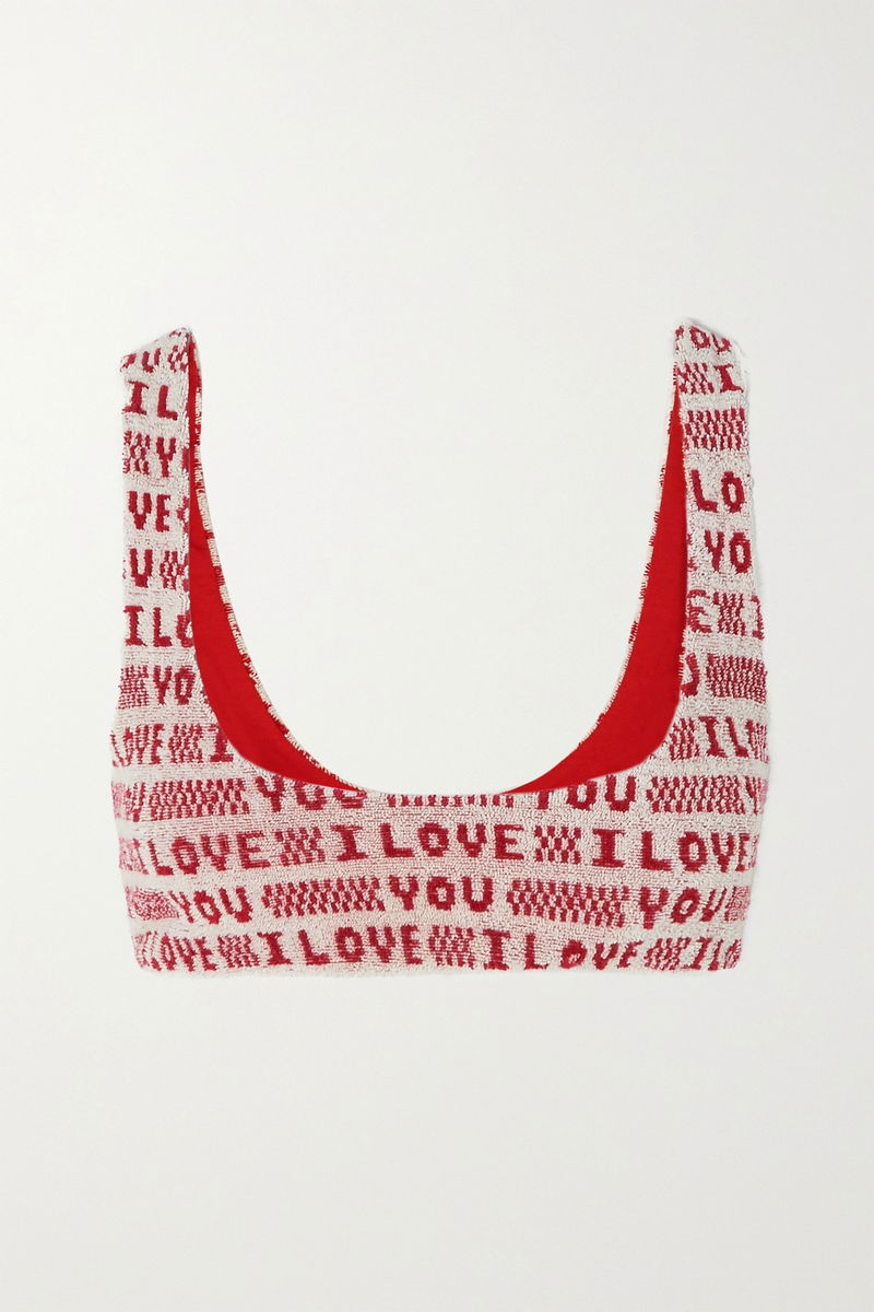Nothing says "I love you" more than Stella McCartney's bralette. Made from quick-drying cotton-blend terry jacquard, it has a square neckline and cropped length that's perfect for days spent by the water and under the sun. Discover the matching shorts in our edit.