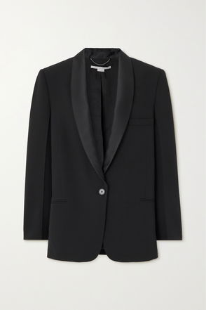 Corset-inspired details were seen throughout Stella McCartney’s Spring ’23 runway – here, they come in shape of contrast topstitching and supportive internal boning. Cut from lightweight grain de poudre, this impeccably tailored blazer has padded shoulders and sharp notched lapels.