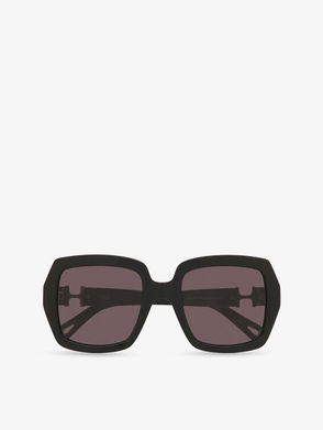 The faux-suede whipstitching and gold-tone metal chain along the arms of these black sunglasses is an homage to Stella McCartney’s signature Falabella bag. They’re made in Italy from bio acetate and over 50% naturally derived materials – in tune with the designer’s eco-friendly ethos – and evoke a contemporary look with the angular shape and dark tinted lenses. Coordinate the hardware with your jewellery.