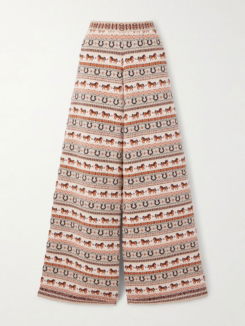 Stella McCartney loves horses and believes in their healing power. Made from wool, these wide-leg pants are knitted with rows of ponies and lucky horseshoes. Style yours with the coordinating scarf.