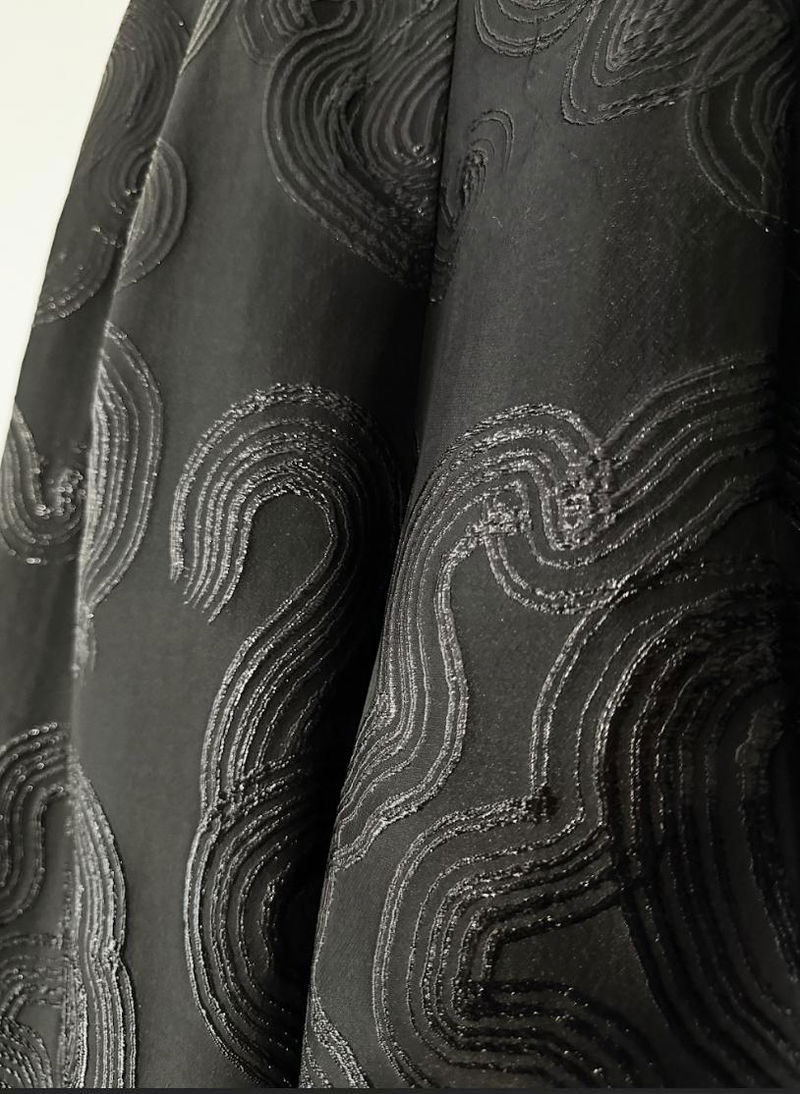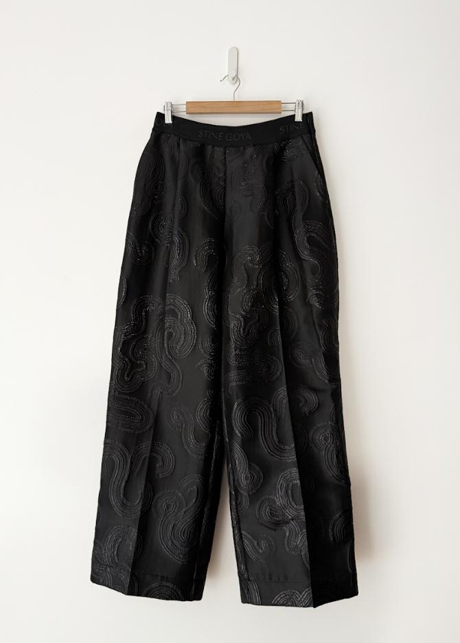 Chic wide leg pleated pants with high elasticated waist, side pockets and monochrome pattern. Wide-leg pants, Metallic, Fil coupé, Pressed creases, Pleated, Two front slit pockets, Elasticated waistband, High-rise cut, Concealed hook and zip fastening at side, Mid-weight, non-stretchy fabric.