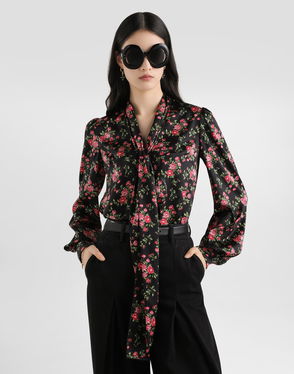 Slips on. Slim fit, round neck, short sleeves, all over flower print.