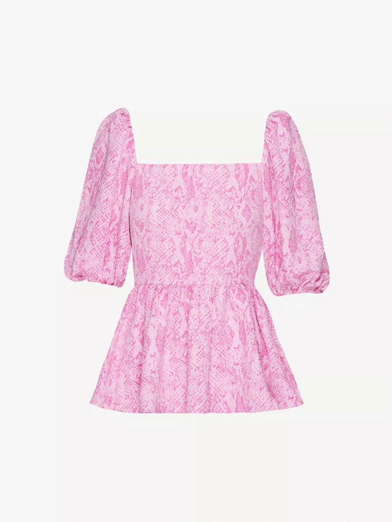 For Pre-Spring ’20, Danish label Stine Goya took its cues from the Italian composer Giuseppe Verdi’s renowned opera Aida. Positioned between the River Nile and the Ethiopian forest, the collection is about the struggle between love and loyalty – love among people and loyalty to one’s heritage. The Irene top comes in a romantic seersucker with a scale-print snaking from the square neckline to the peplum hem. Don yours with equally contrasting separates.