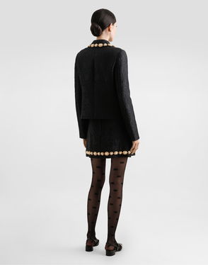 Jacket, Metallic, Brocade, Button fastenings through front, Fully lined, Mid-weight, non-stretchy fabric.