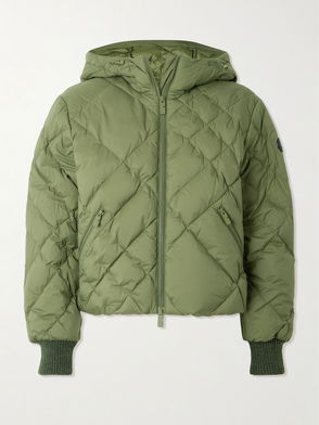 Coat, Floral-print, Shell, Quilted, Drawstring hood, Drawstring waist, Knitted cuffs, Breast pocket, Two front slit pockets, Synthetic filling, Two-way zip fastening through front, Mid-weight, non-stretchy fabric.