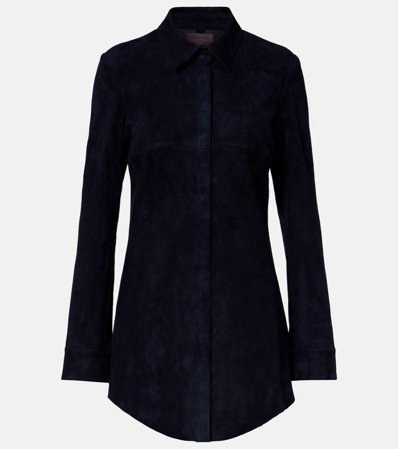 The Geraldine dress from Stouls is made from supple and stretchy suede, a signature material that's celebrated for its premium quality and machine-washable properties. This mini-length design features classic shirting details and side pockets.