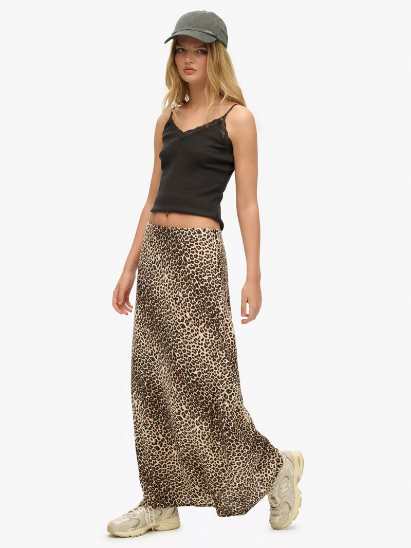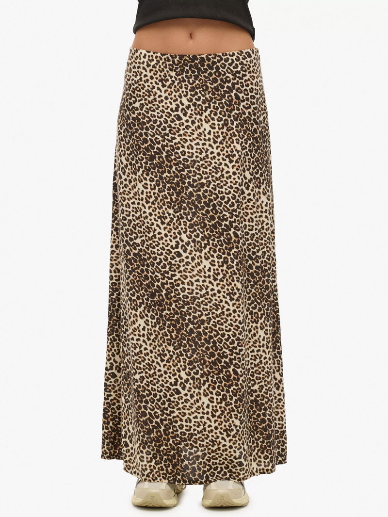 Animal Print Column Maxi Skirt, Diagonal Leopard