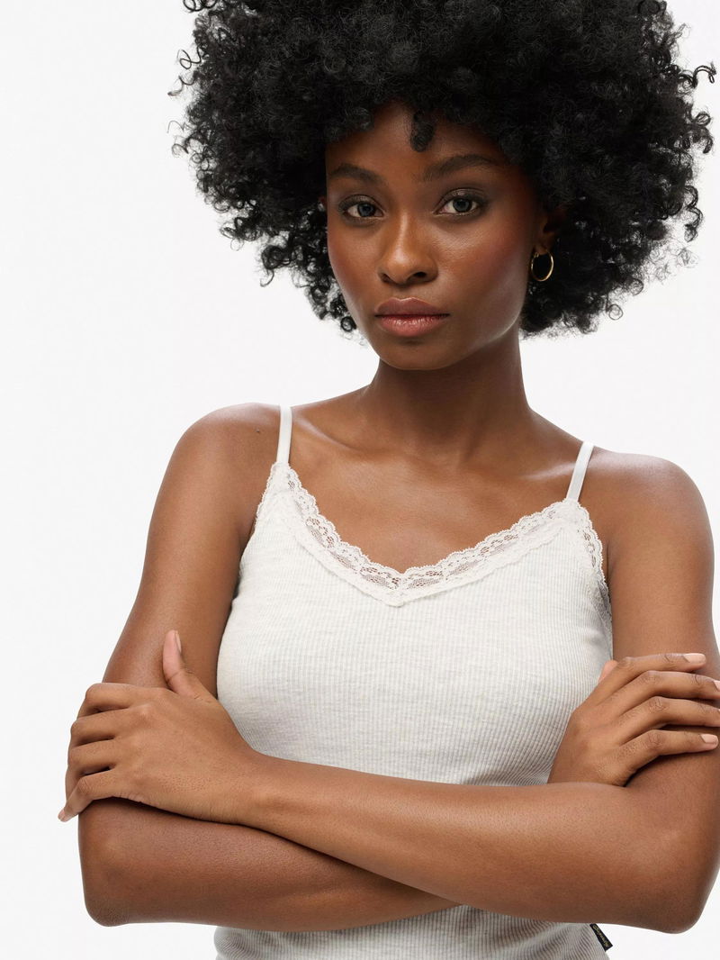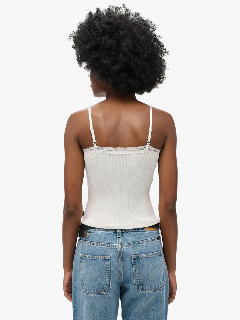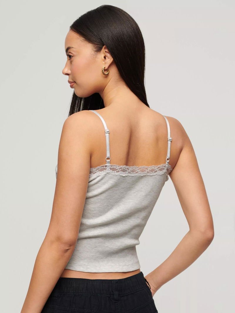 Athletic Essential Lace Trim Cami Top, Light Iced Marl