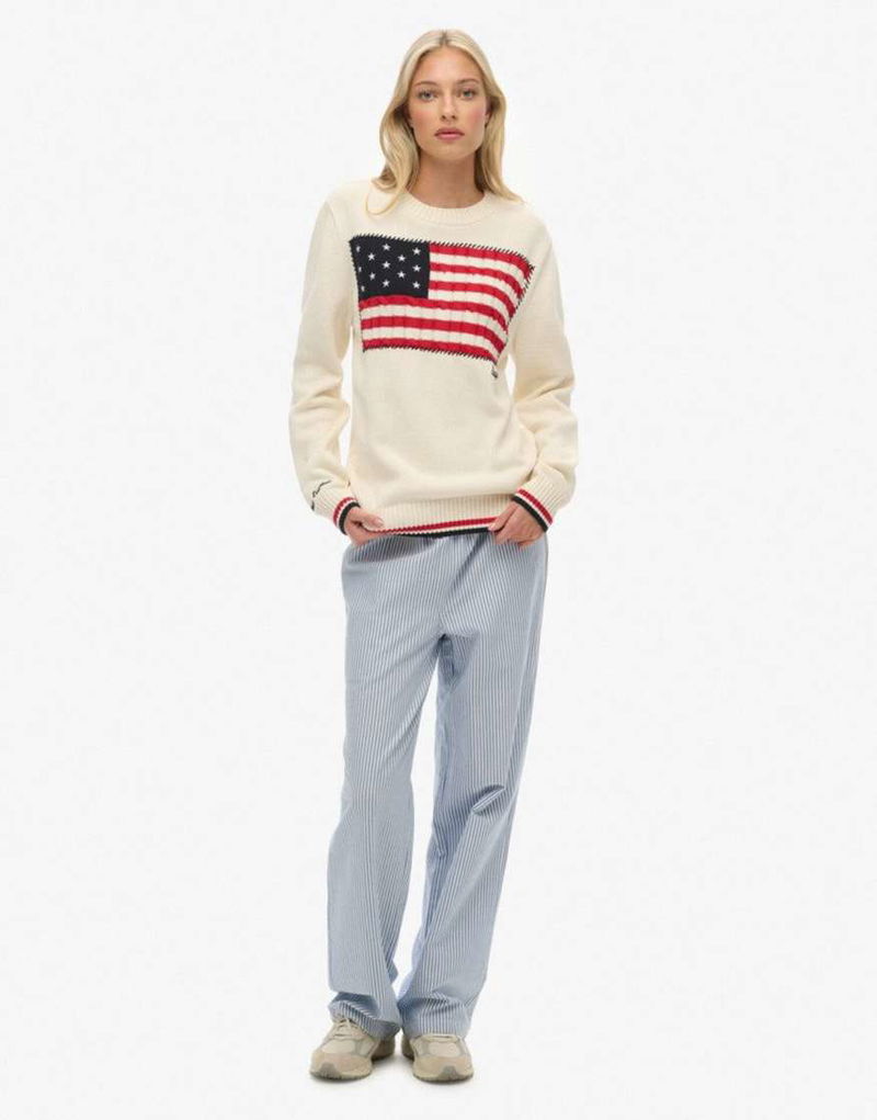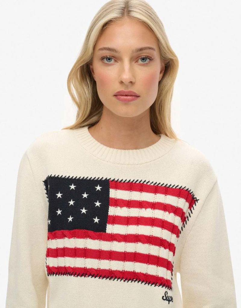 Athletic Essentials Americana Flag Crew Knit In Cream