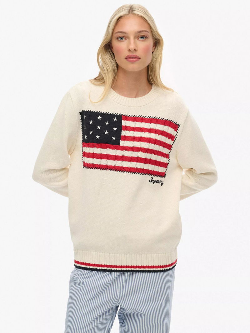 Athletic Essentials Americana Flag Crew Knit Jumper, Cream/Multi
