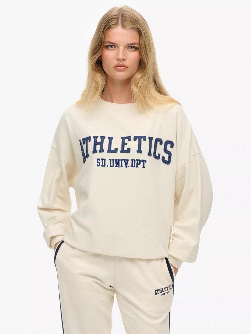 Athletic Essentials Applique Crew Sweatshirt, Desert Bone Offwhite