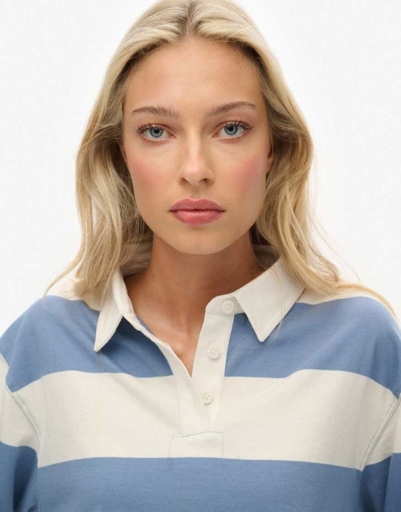 Athletic Essentials Cropped Stripe Rugby Top In Tidal Blue/ecru Stripe