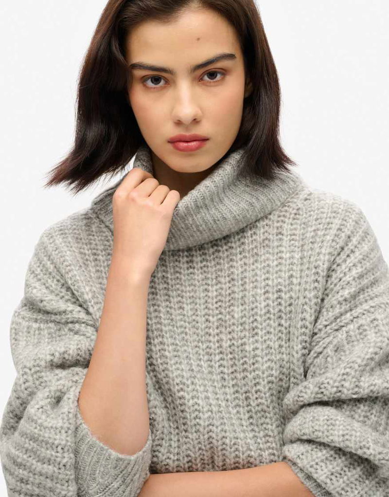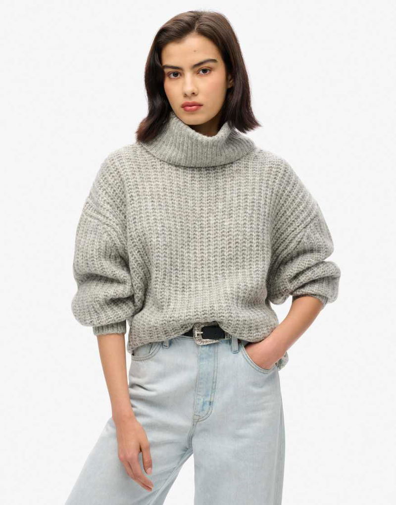 Brushed Rib Slouch Neck Jumper In Heather Grey Twist