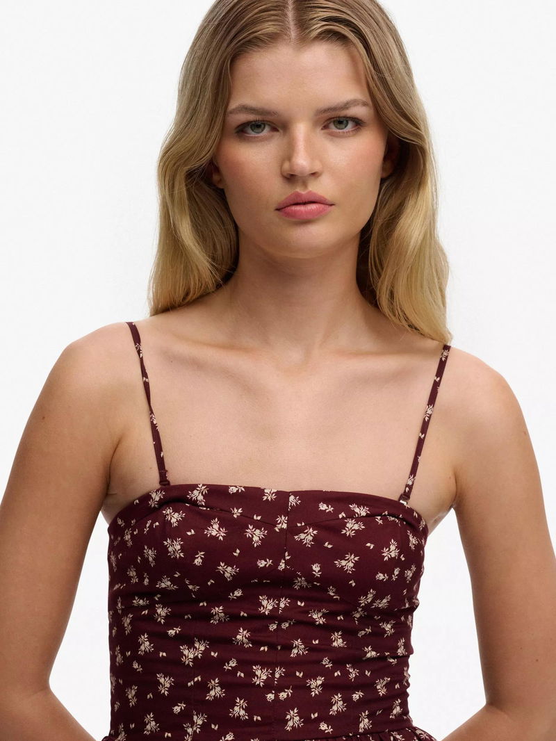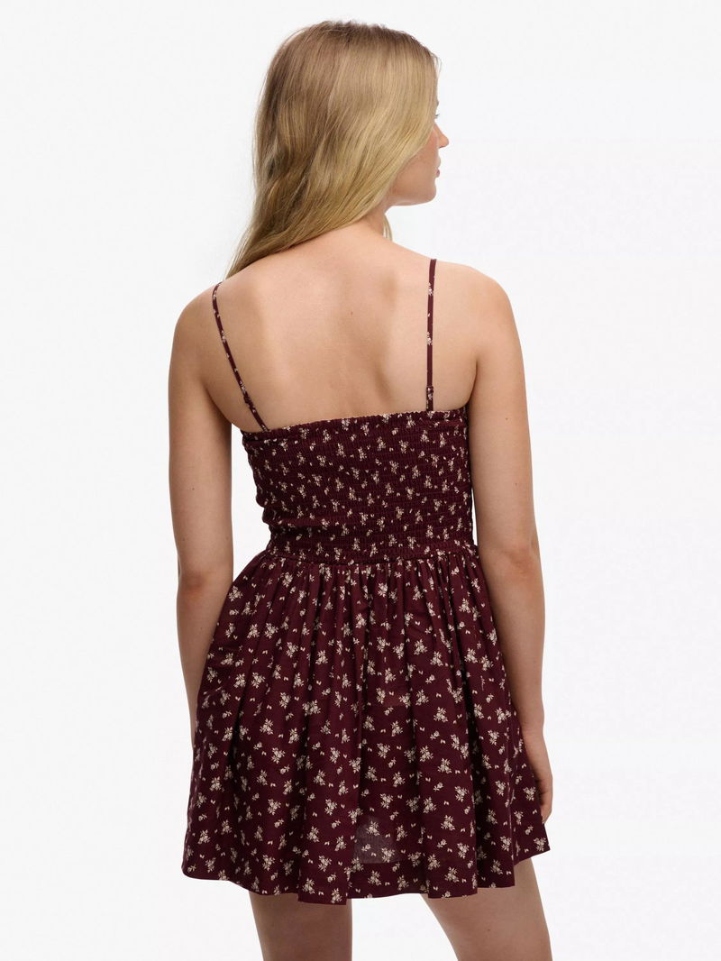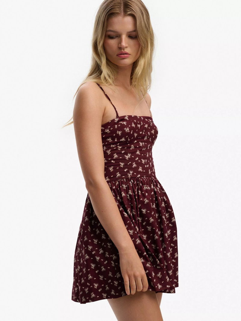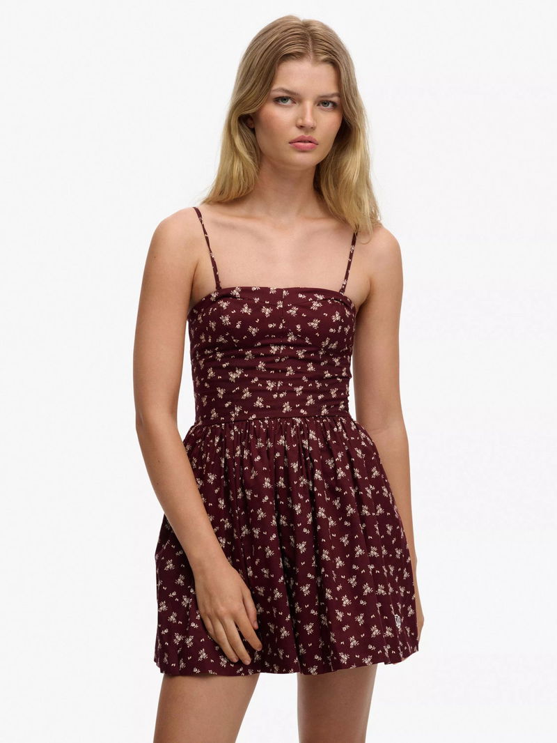Corset Cami Mini Dress, Burgundy Ditsy