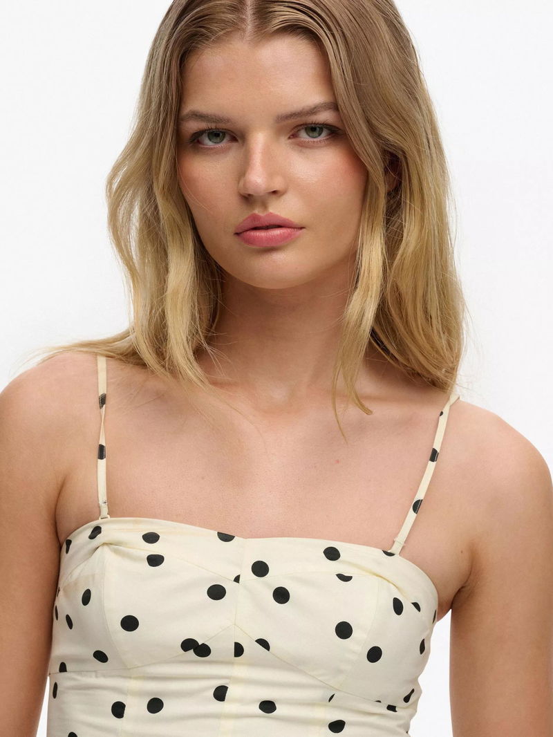 Corset Cami Mini Dress, Cream Blck Polka Dot