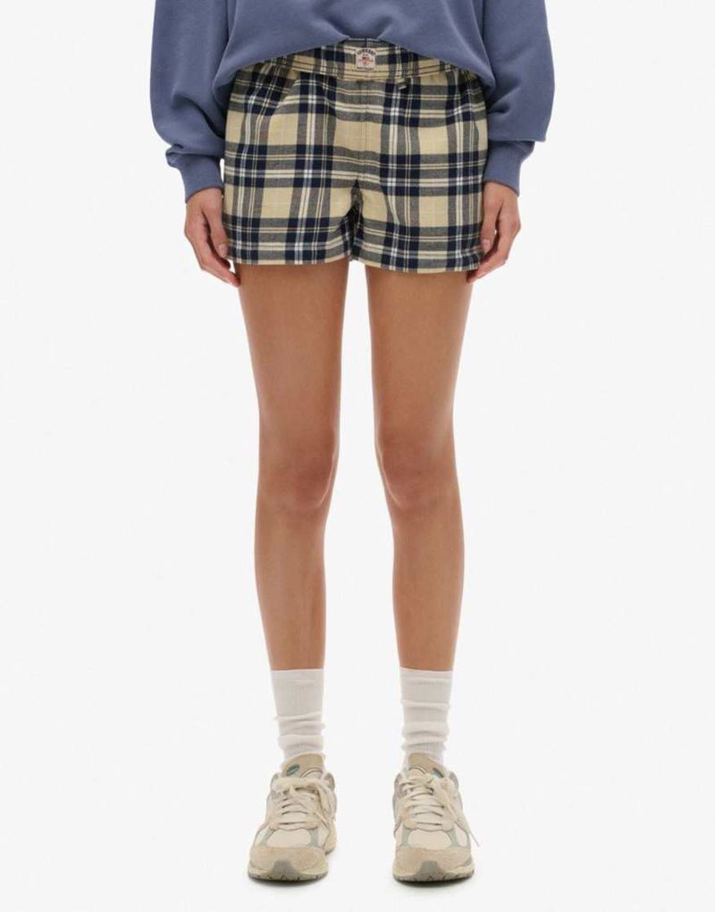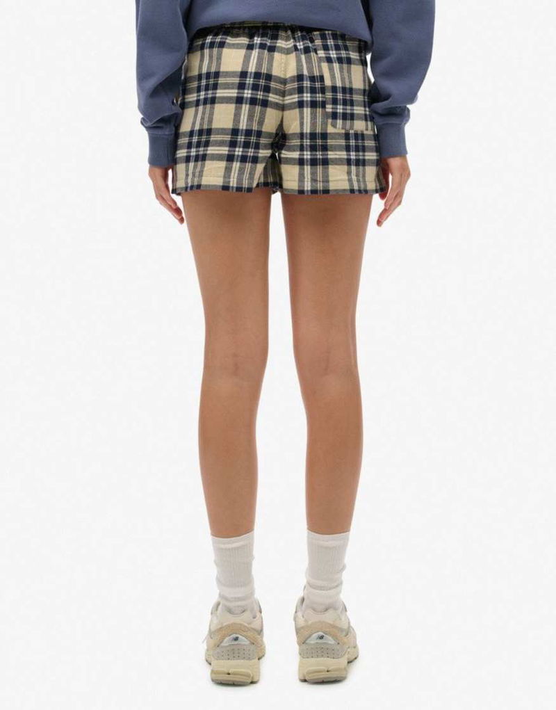 Cotton Check Elastic Shorts In Cream/navy Check