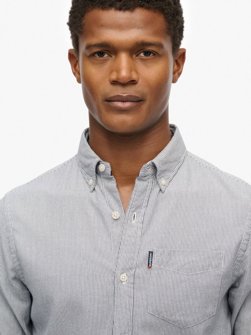 Cotton Essentials Long Sleeve Stripe Oxford Shirt, Grey
