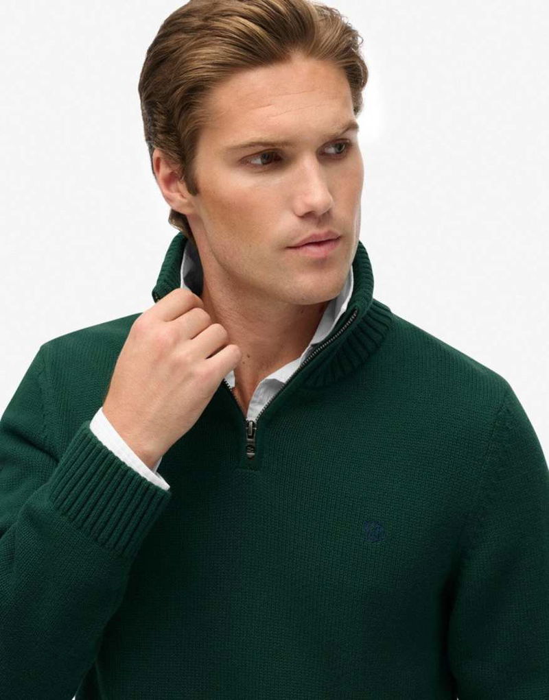 Cotton Half Zip Knit Jumper In Forest Green
