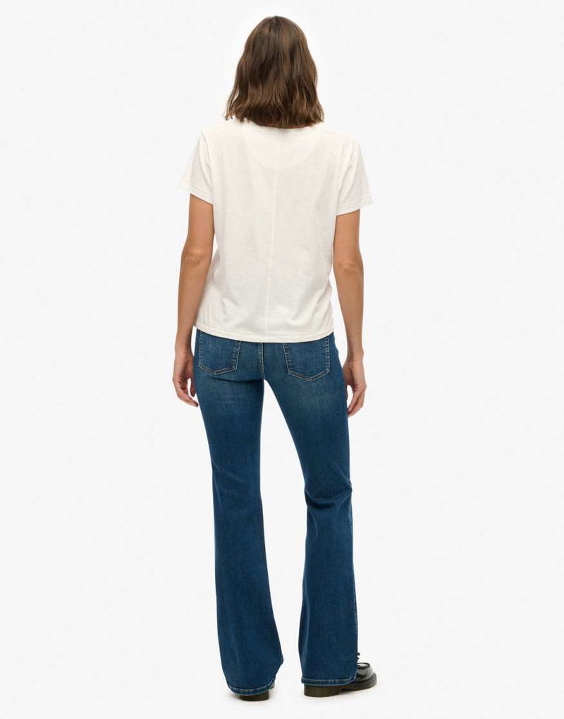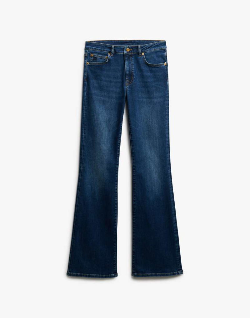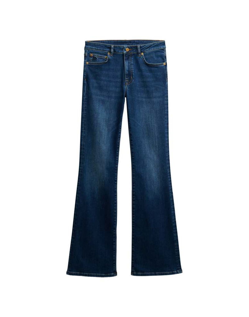 Cotton Mid Rise Flare Jean In Deep Indigo Denim