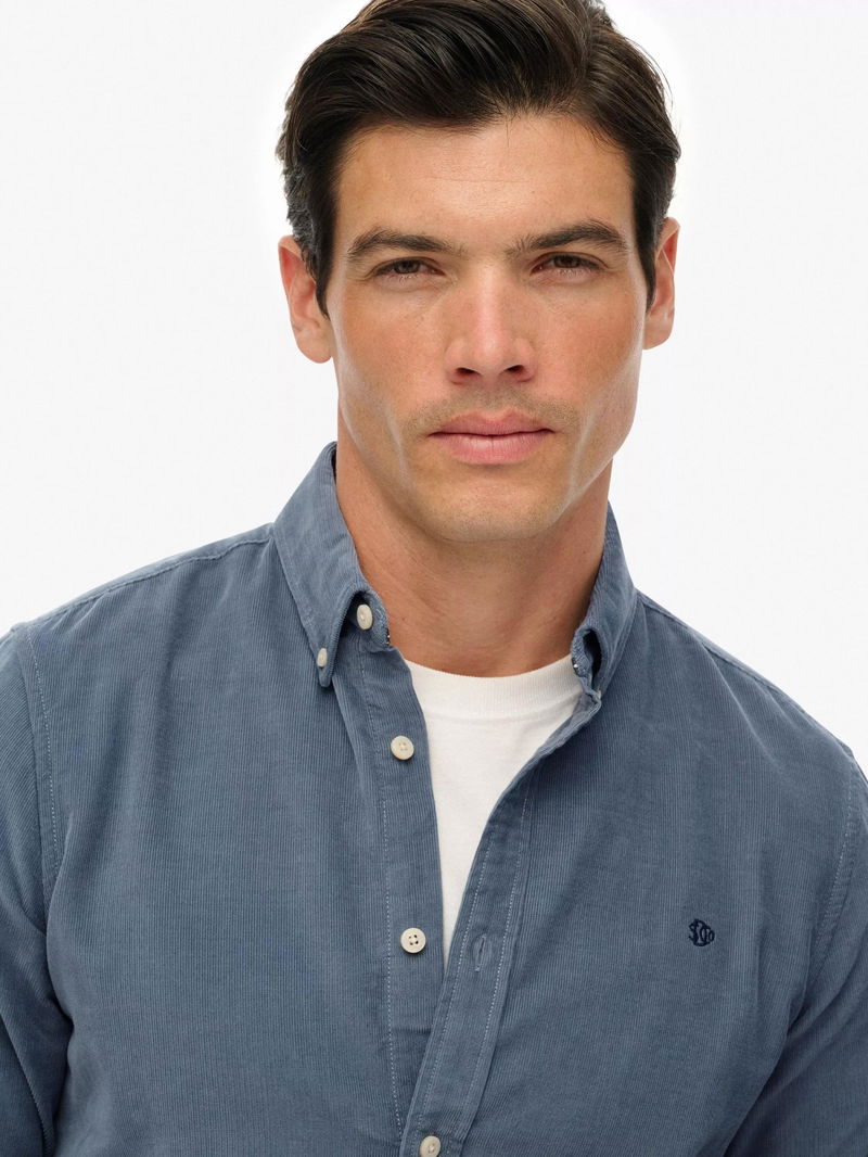 Cotton Regular Fit Classic Needlecord Shirt, Stormy Weather Blue