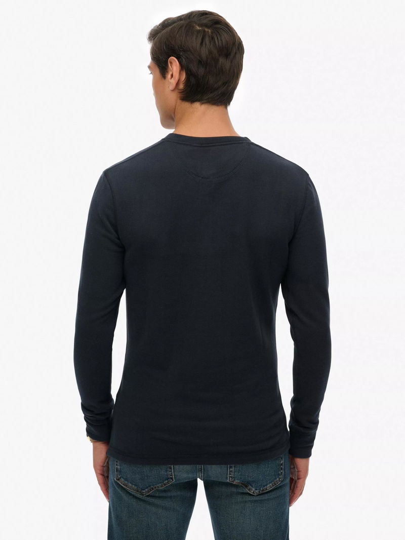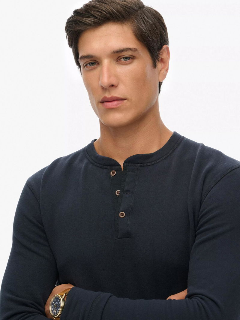 Cotton Regular Fit Long Sleeve Grandad Top, Eclipse Navy