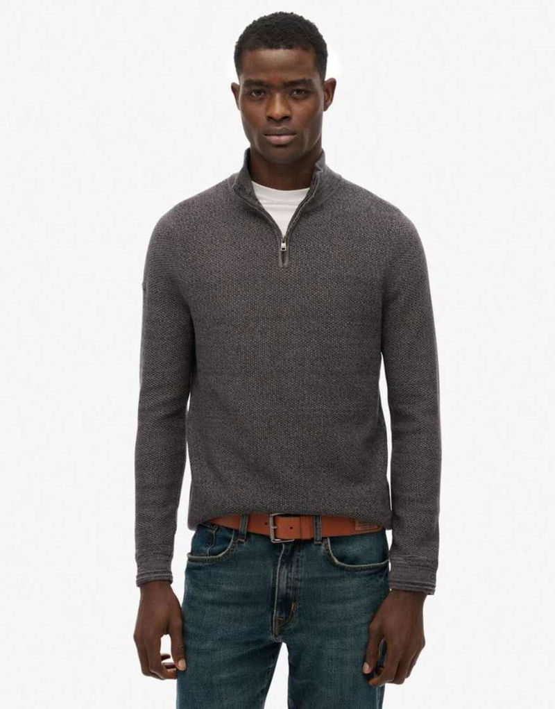 Cotton Texture Half-zip Jumper In Black/dark Grey