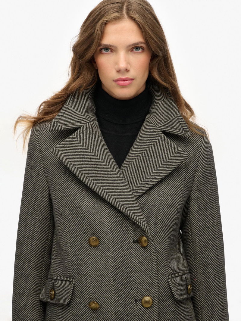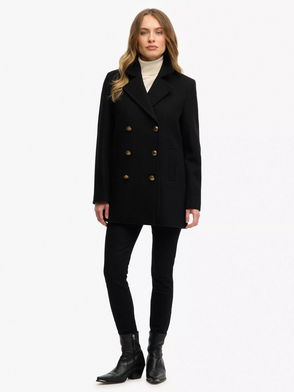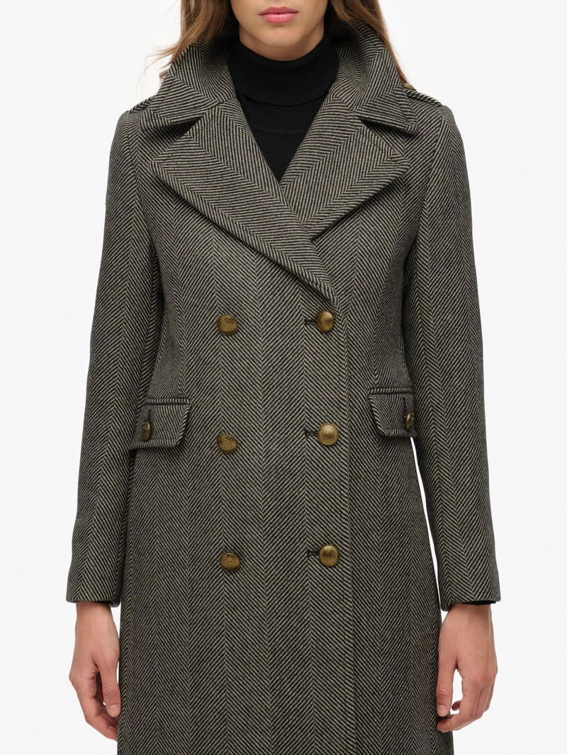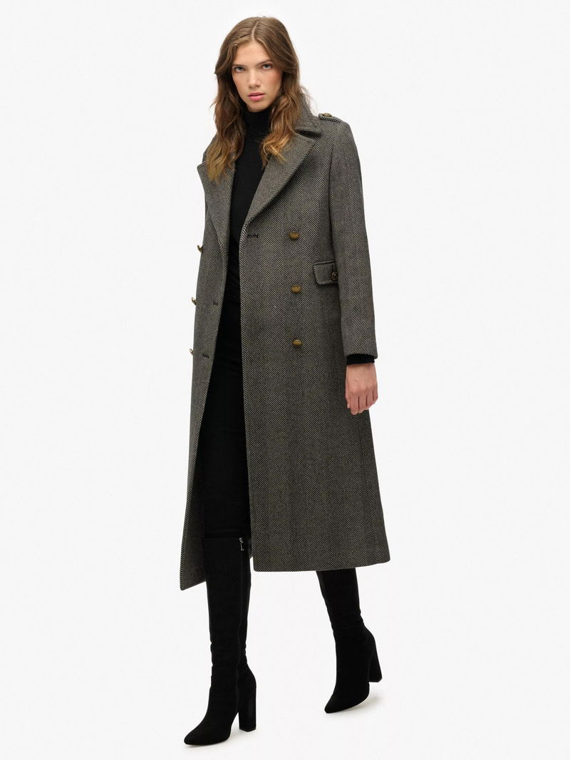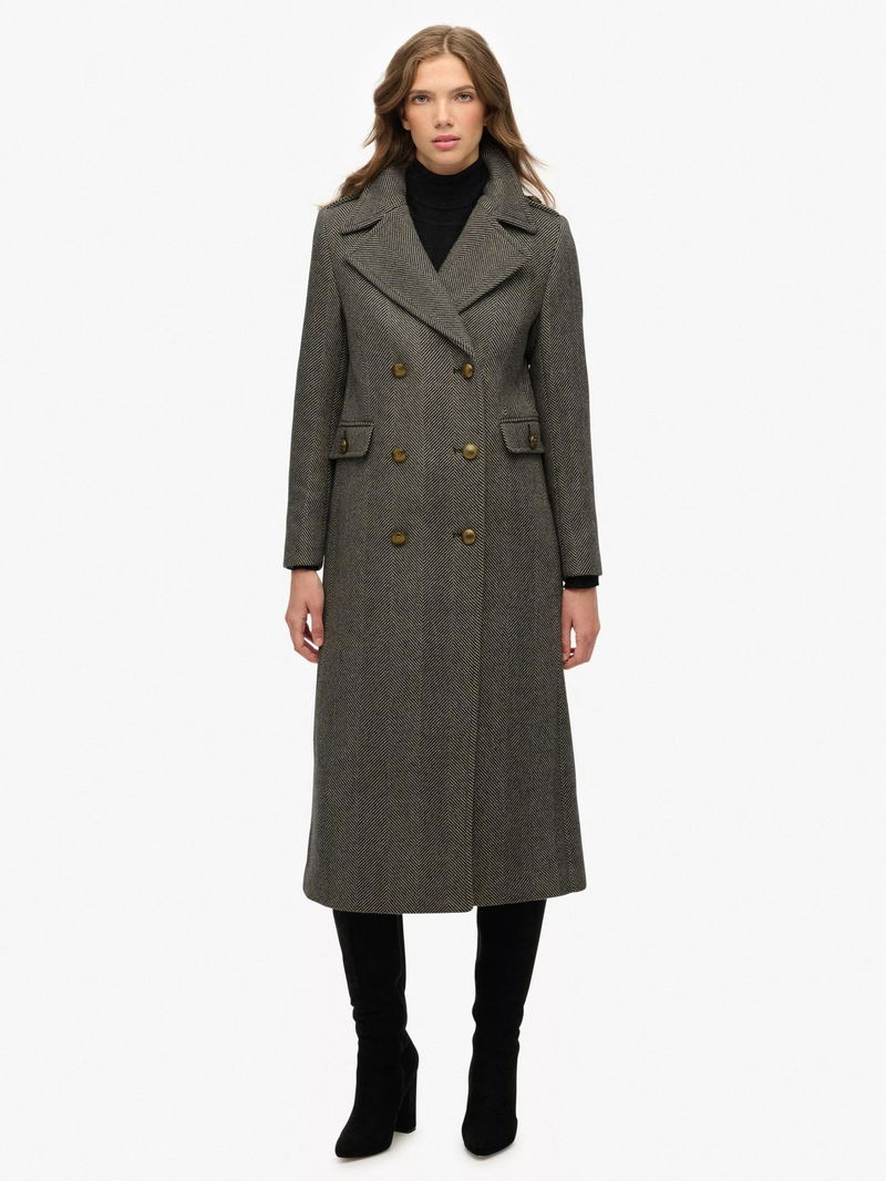 Double Breasted Wool Blend Coat, Ivory/Black