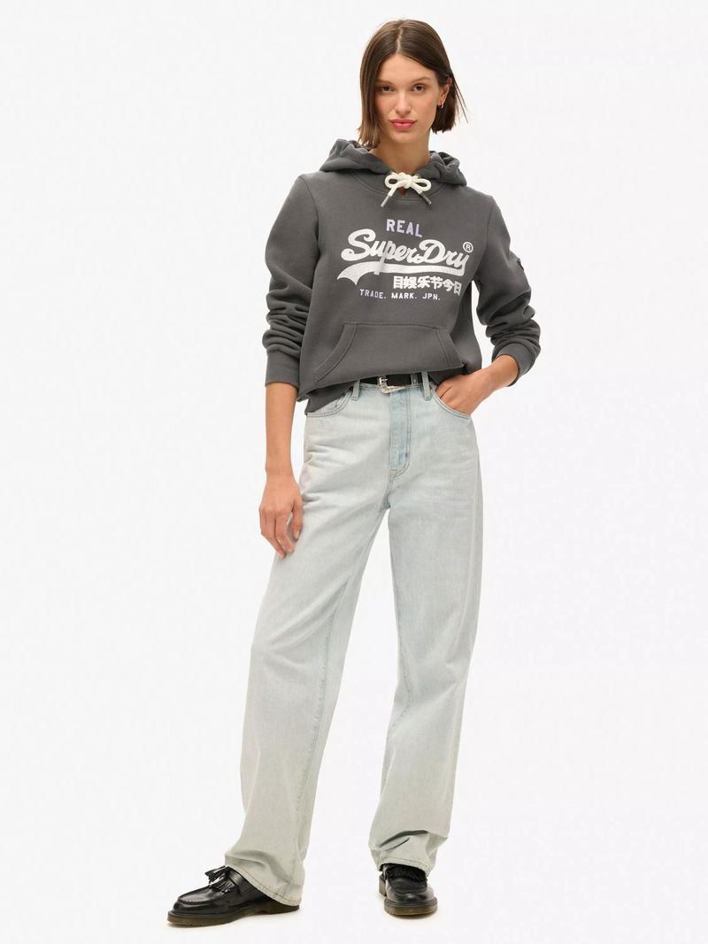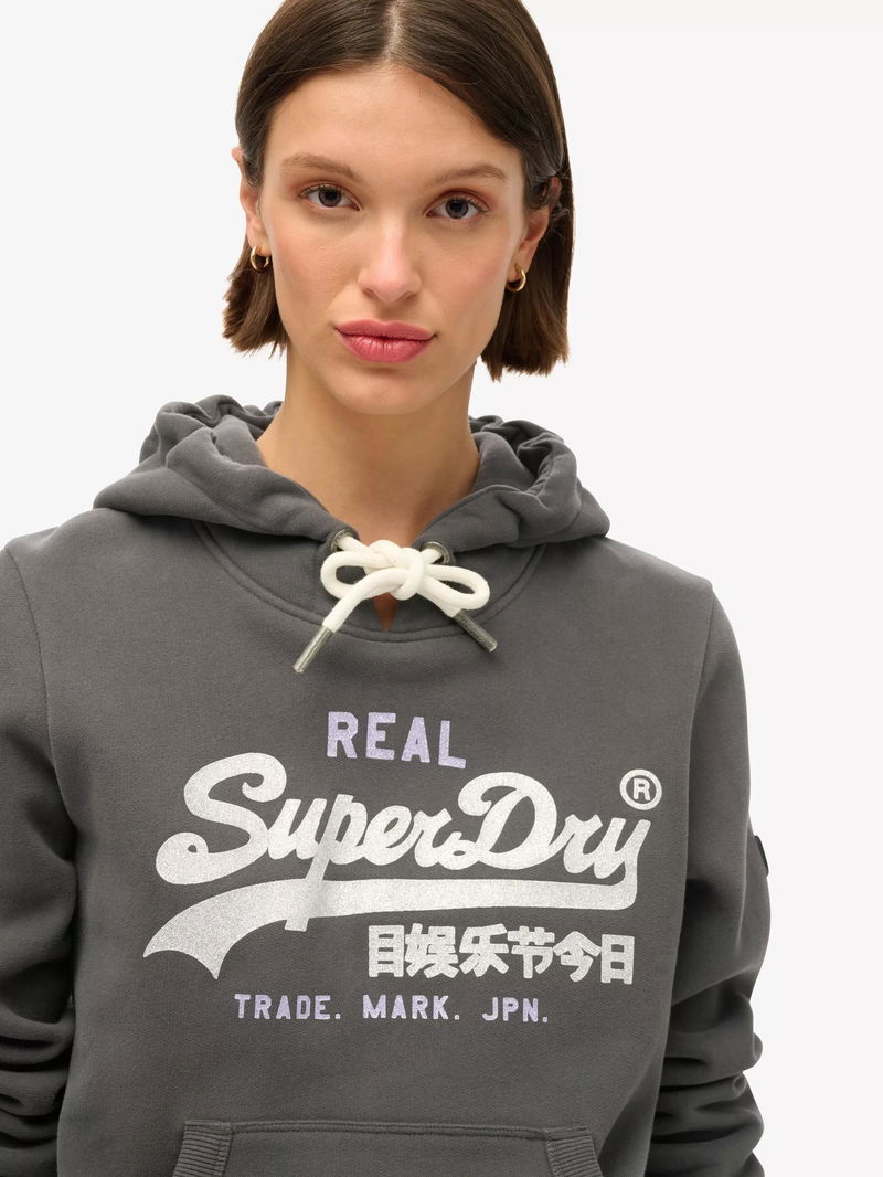 Cosy up on the cooler days with the Embellished Vintage Logo Graphic Hoodie. Superdry have taken the classic hoodie design and added some sparkle to bring you a piece that will not only slip seamlessly into your casual wardrobe but will also be ideal for lounging in.