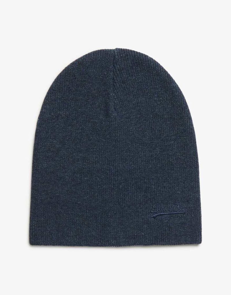Essential Logo Knitted Beanie Hat In Richest Navy Marl