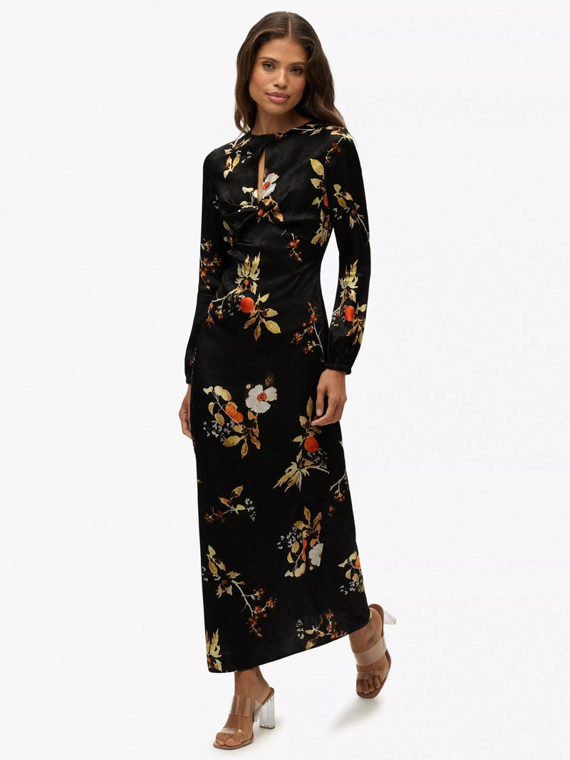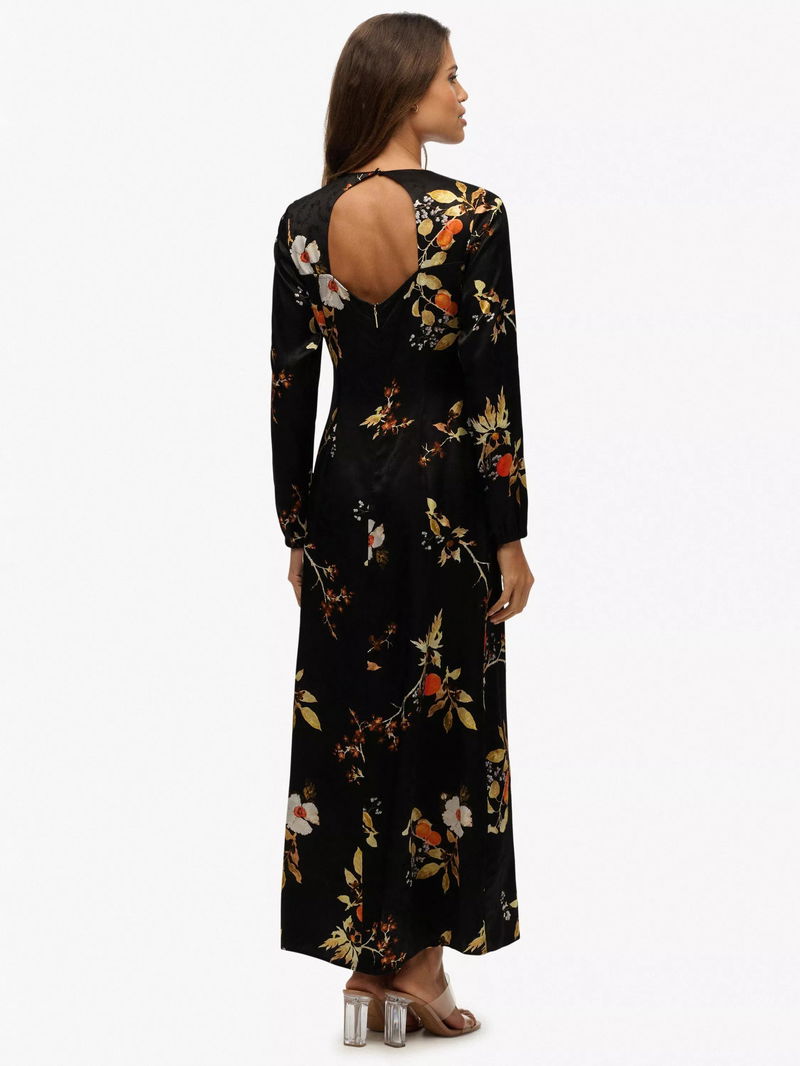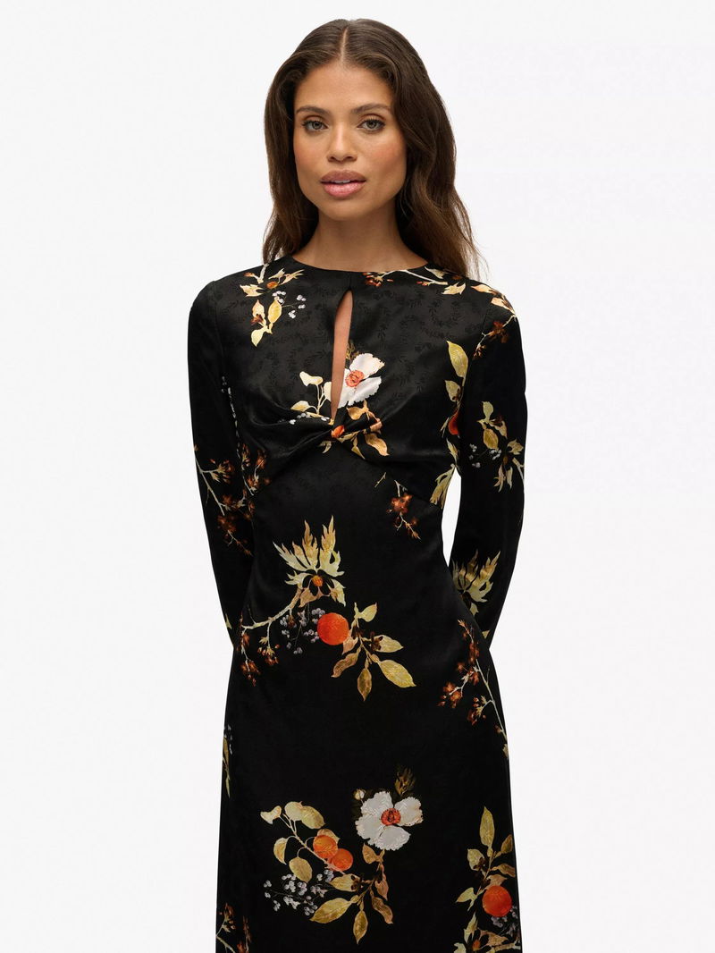Floral Long Sleeve Jacquard Maxi Dress, Black/Multi