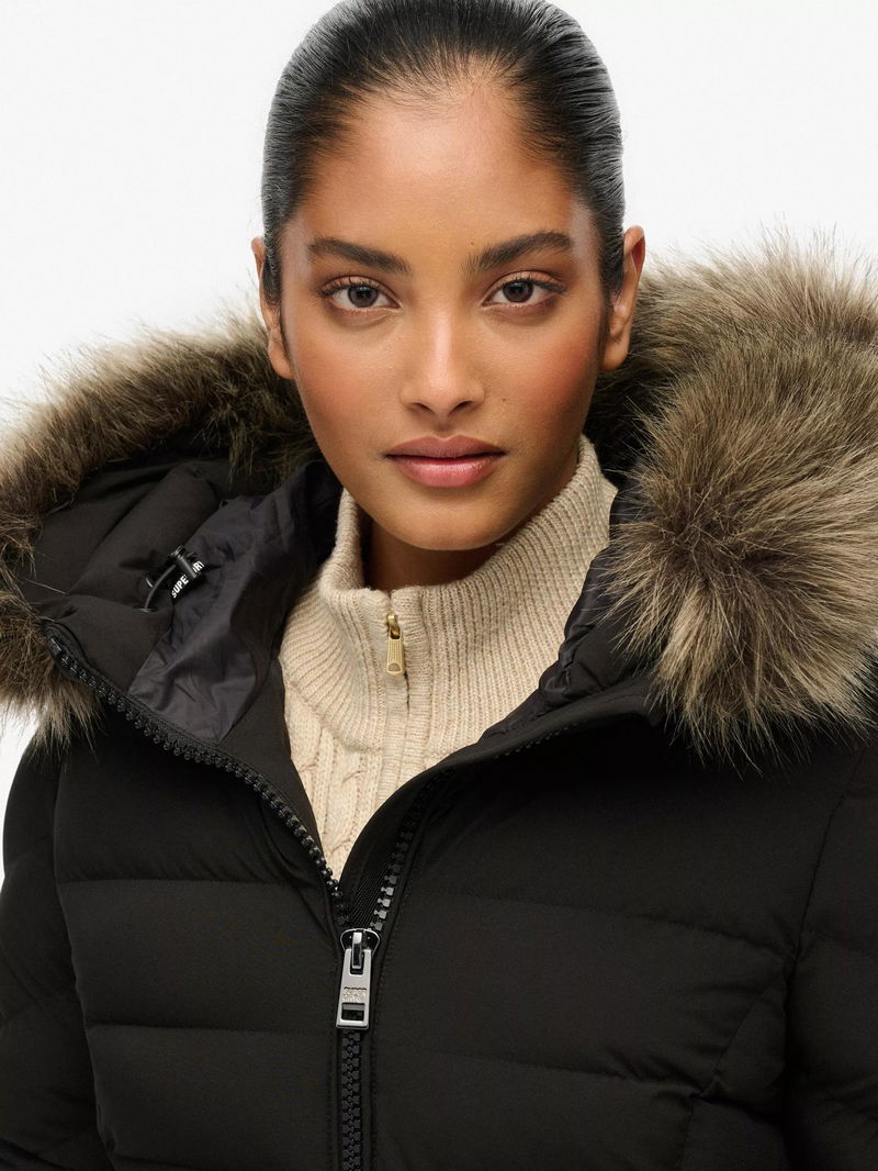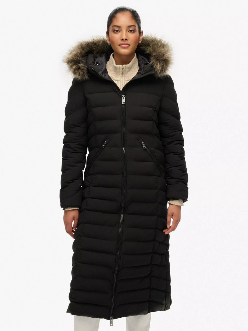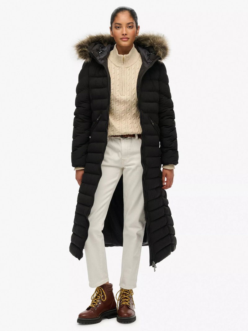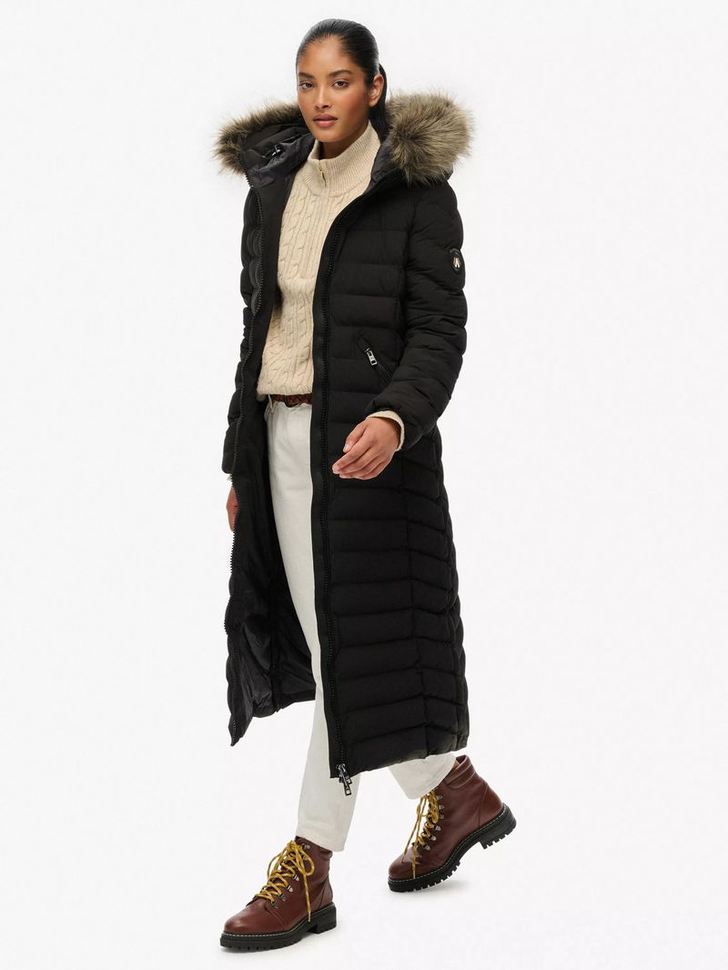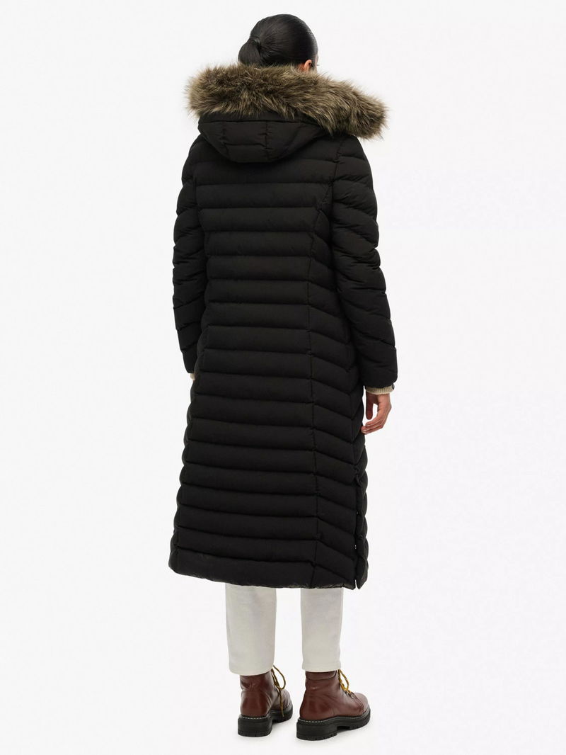 Fuji Faux Fur Hooded Longline Jacket, Black