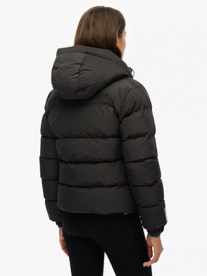 Packed full for a cosy wear on chilly days, this puffer coat by Superdry has a longline cut for a sleek profile. Hooded for when the heavens open, it is fashioned from long-lasting fabric that will see away the cold.