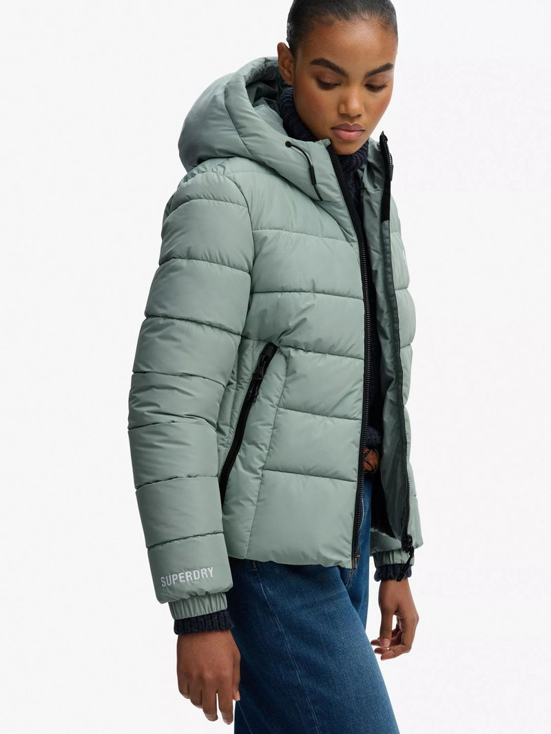 Hooded Spirit Sports Puffer Jacket, Light Jade Green